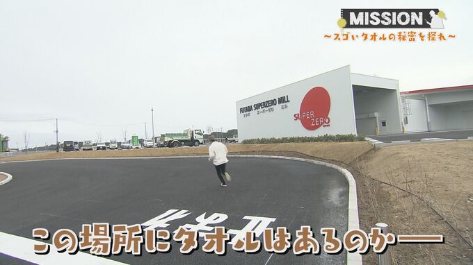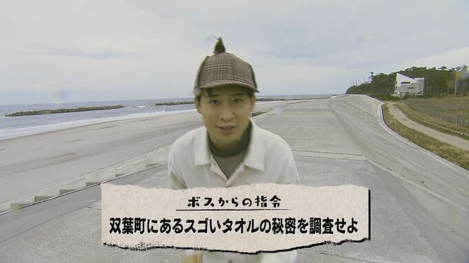 --浦部調査員(TUFアナウンサー)「双葉町にやってきました。ここに“スゴいタオル”があるということでボスから調査の指令を受けたので、早速探っていきたいと思います。」