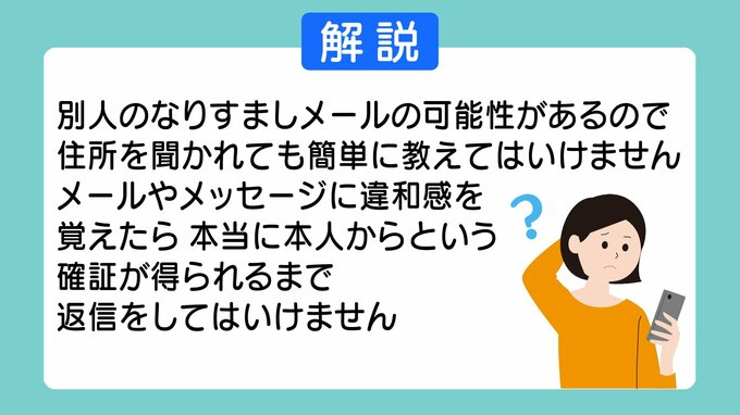 →本人かの確証が得られるまで、返信をしてはいけません。