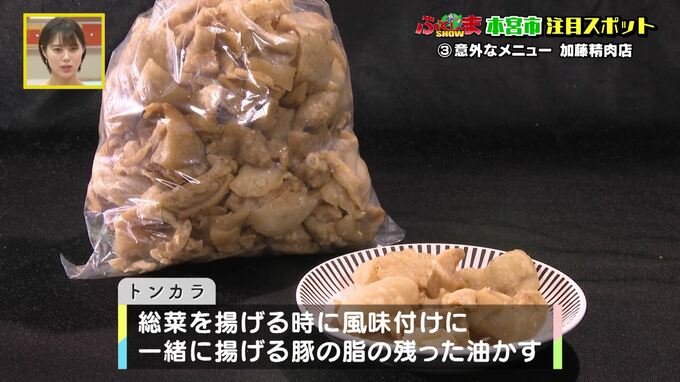 トンカラとは、豚の脂を油で揚げた油かすのこと。