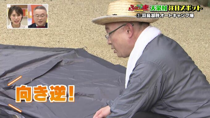 ---田代さん「じゃあ鏡田さん、テントをまず選びますね。きょうはワンポールのテントを使いたいと思います。」