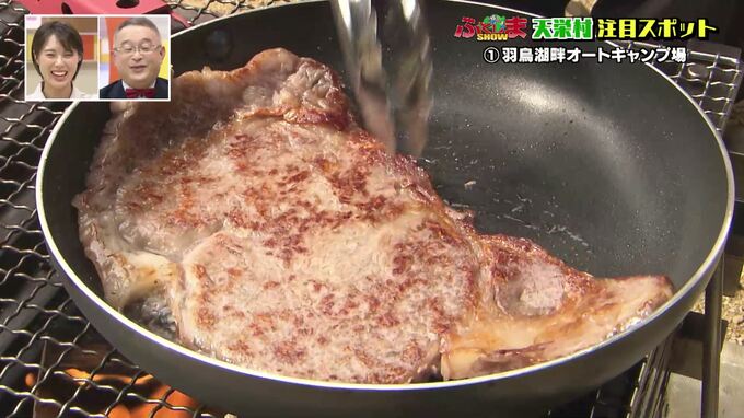 ---鏡田さん「いや見てください。この焼き目。いただきます。おいしい、最高じゃないですか。疲れ取れますもん。何よりの贅沢ですね。ほんと贅沢。これがアウトドアなんですよ。」
