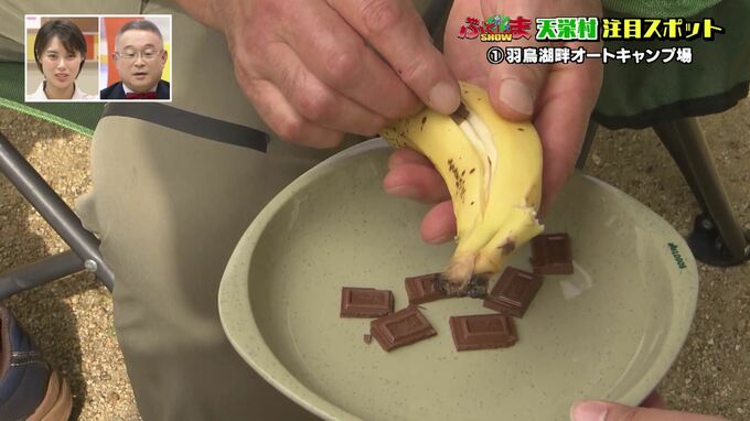 ---田代さん「きょうはデザートも用意しました。バナナ。ナイフ入れてですね、この間にチョコレート。」