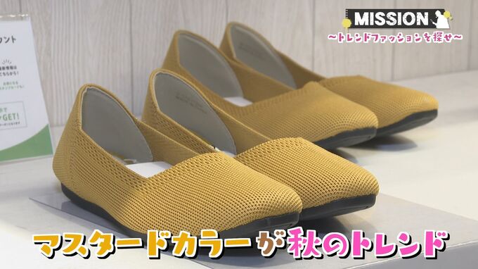 --若松さん「ニットパンプスもおすすめなんです。カラフルにいろいろな色が7色。この秋トレンドのマスタードのカラーもあります。」