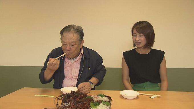 2人はこのあと、小名浜魚市場の食堂を訪れ、「イセエビ」の刺身を試食しました。