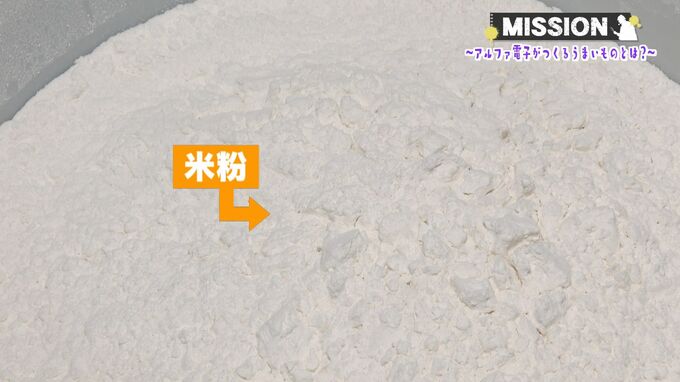 この白い粉に何か秘密がありそう。この機械で作られた麺の素となる白い粉を、ミキサー(企業秘密)に投入。水とデンプンを加え、丁寧にこねられ、麺の生地になっていきます。