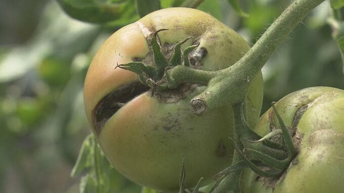 阿部真奈記者「こちらのトマトハウスでは、記録的な猛暑の影響で、このようにトマトの実が割れてしまうなどの様々な影響が出ています」