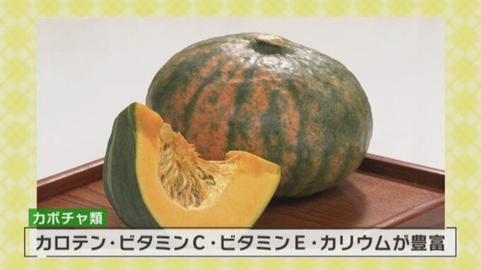 カロテンが豊富でビタミンC、E、カリウムを多く含んでいます。特にビタミンEは血行を促進し、体を温めるので冷え性の緩和に効果があると言われています。