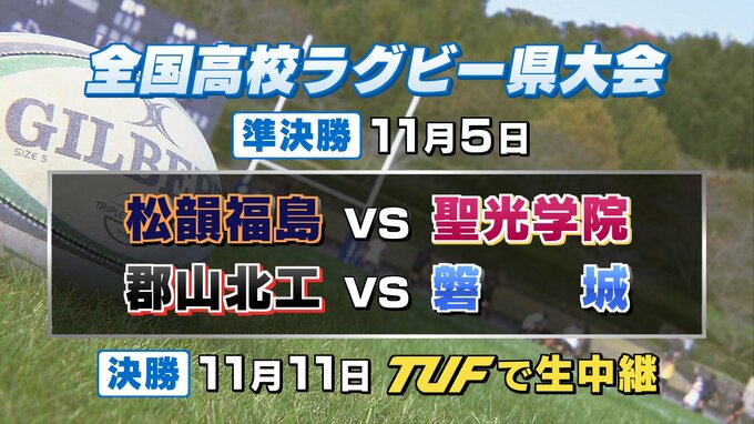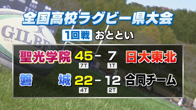 全国高校ラグビー県大会は28日、残りの1回戦が行われました。第1試合は、聖光学院が7トライを奪う猛攻で、日大東北に圧勝しました。