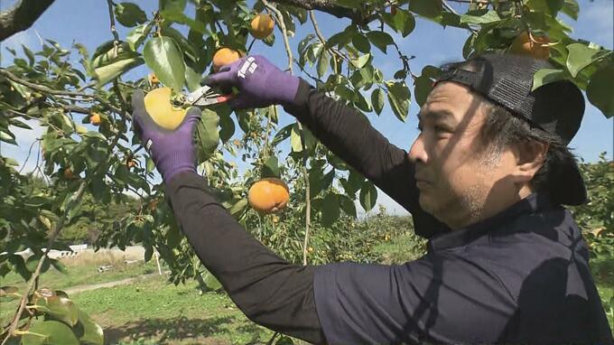 秋の穏やかな日差しを受けてたわわに実った柿。福島県会津若松市の遠藤農園ではいま、会津みしらず柿の収穫が最盛期を迎えています。