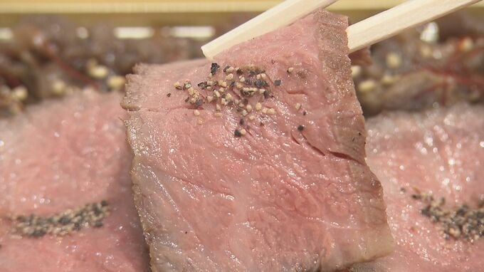 こちらは、滋賀県の近江牛を使ったステーキと焼き肉の弁当です。