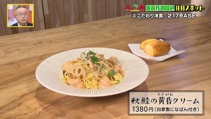 それがこちらの「秋鮭の黄昏れクリームパスタ」。旬のきのこと、ごろっと入った鮭が相性抜群。