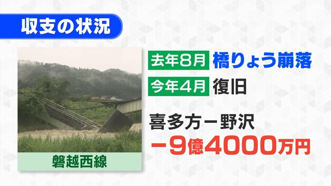 このほか、自然災害による影響もありました。去年8月の豪雨で橋りょうが崩れ、今年4月に復旧した磐越西線の喜多方と野沢の区間では、9億4000万円の赤字となりました。一部の区間で不通が続いたことで、利用者が減ったことが主な要因とみられています。