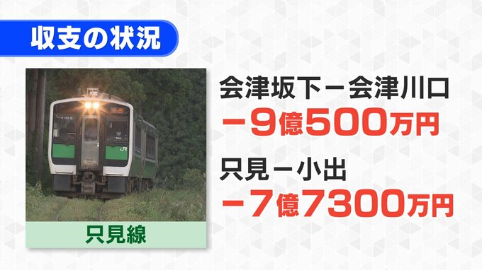 たとえば、去年全線で運転が再開した只見線は、会津坂下から会津川口の間が、9億円あまり。只見から小出の区間では、7億7300万円の赤字となりました。