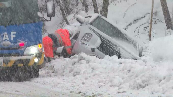 さらに、1キロ先でも転落する車が。いずれも冬タイヤを装着していて、けが人はいませんでした。