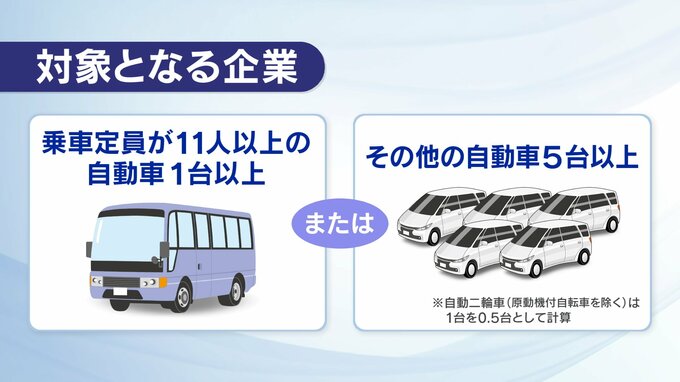 幼稚園バスなど、大人数が乗れるような車を1台でも所有している場合も今回の義務化の対象です。