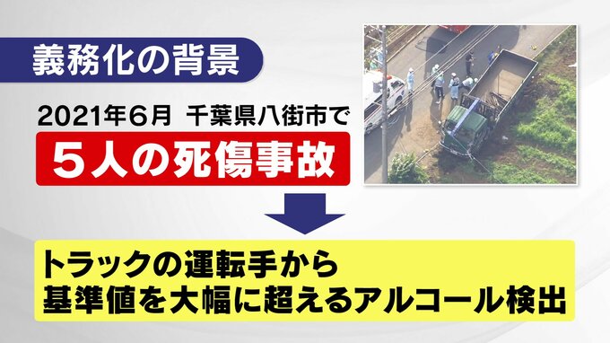 そもそもこのアルコールチェックの義務化の背景にあるのが、おととし6月に千葉県八街市で起きた、児童5人が死傷した事故です。この事故ではトラックの運転手からは基準値を大幅に超えるアルコールが検出されました。