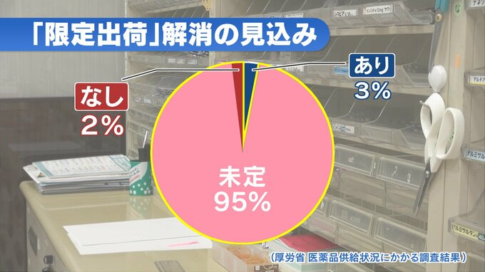 これは厚生労働省の調査でも示されていて、限定出荷の医薬品のうち95%で、解消の見込みが「未定」となっています。