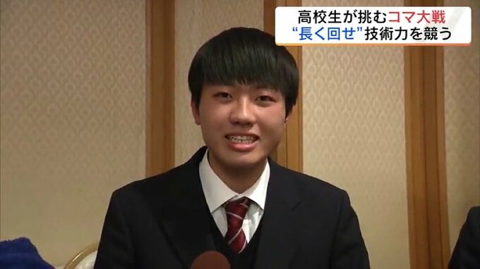 大会当日、コマを回すのは、4月からチームを束ねてきた班長の芳賀柊斗さんです。コマの性能が良くても、上手く回すことができるかどうかが結果を大きく左右します。この日も、チームの思いを背負って何度も何度もコマを回し続けました。