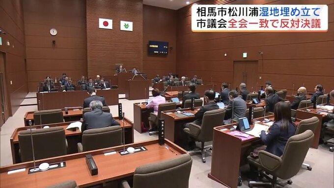 福島県相馬市の松川浦にある湿地を埋め立てる計画があり、環境への影響を心配する声が広がっています。相馬市議会は20日、湿地の埋め立てに反対する決議を全会一致で可決しました。