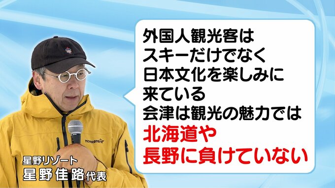 星野リゾートの星野佳路代表は「外国人観光客はスキーだけでなく、日本文化を楽しみに来ている。会津は観光の魅力では北海道や長野に負けていない」と話しています。
