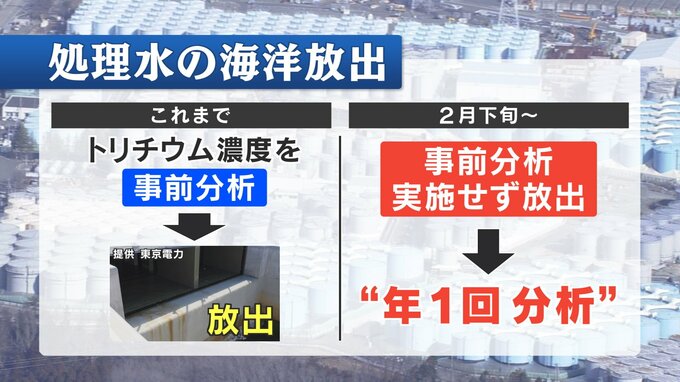 これまで東京電力は、処理水を海へ流す前にトリチウムの濃度を測る事前分析を行っていましたが、来年2月下旬に始まる4回目の放出からはこうした分析を行わず、今後は「年1回、分析のみ行う」としています。