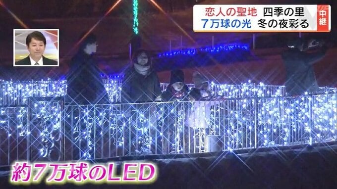 四季の里のイルミネーションは毎年1月から点灯されていましたが、恋人の聖地に選ばれたことを受け、今年はクリスマスシーズンから行われています。