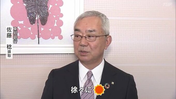 東邦銀行・佐藤稔頭取「徐々に晴れていく。晴れ間が広がるという意味で、最後は晴れていい年だったという1年になるのではないかと思っています。長くデフレで苦しんできたけれど、思いきり成長に向かって成長軌道に乗れるかどうかという大事な年だと思っています」