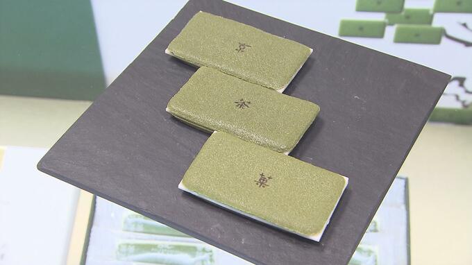 初出店の京都北山マールブランシュのお濃茶ラングドシャ「茶の菓」。濃厚なお茶が練り込まれたラングドシャに、ミルク感豊かなホワイトチョコレートが挟まれています。