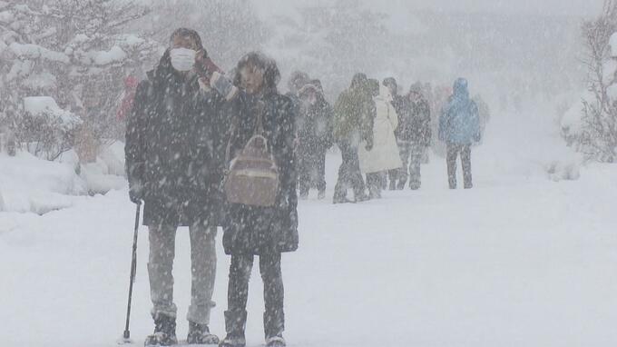 県内有数の観光地、下郷町の大内宿では雪が降りしきるなか、16日も台湾からの観光客で賑わいをみせていました。