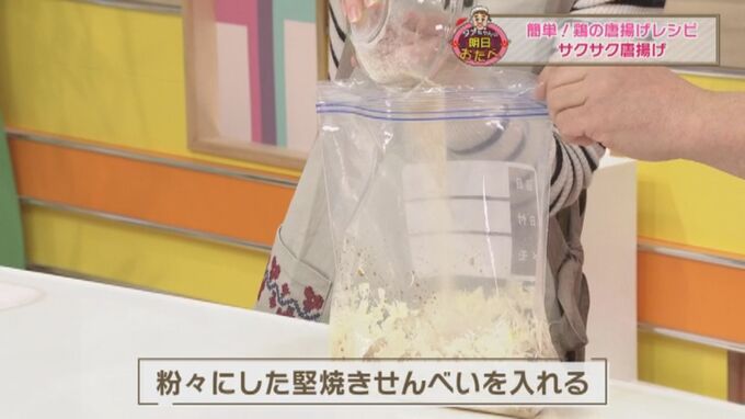5.さらに粉々にした堅焼きせんべいを入れてもみ込む。