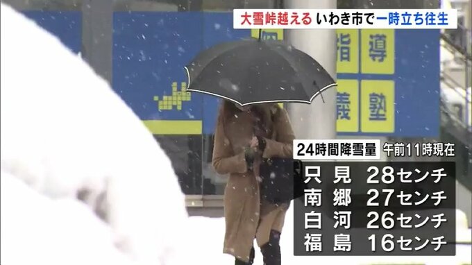 5日午後から県内では雪が降り続き、午前11時までの24時間に降った雪の量は、只見で28センチ、南会津町南道で27センチ、白河で26センチ、福島で16センチなどとなっています。