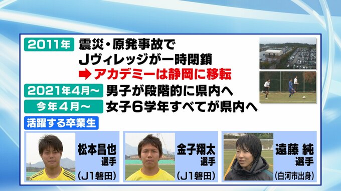 しかし、11年の震災、原発事故でJヴィレッジは一時閉鎖。アカデミーは静岡県に拠点を移して活動を続けていましたが、21年4月から男子が段階的に県内に戻り、今年の4月には女子の6学年すべてが福島県内に戻る予定です。