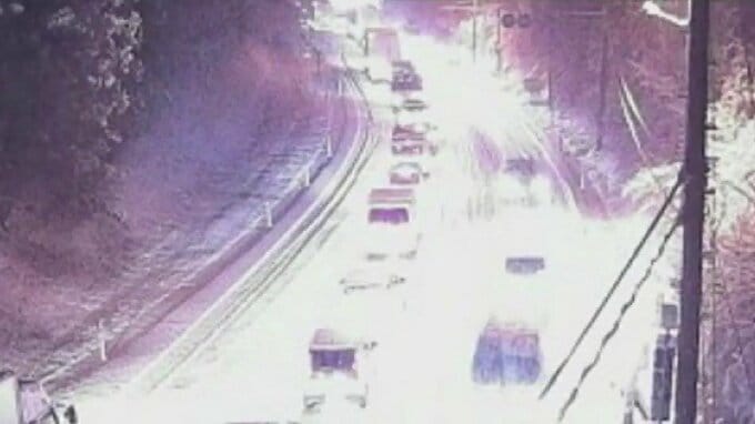 水津邦治アナウンサー「いわき市長沢峠です。午前9時ですが気温は氷点下。ここでは車の立ち往生が5時間半に渡って発生しました」