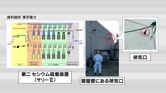 「サリーⅡ」は、廃炉作業で出た汚染水から、放射性物質のセシウムを何段階に分けて取り除く装置のひとつで、水が漏れたのはこの装置で発生する水素だけを外に出す排気口です。