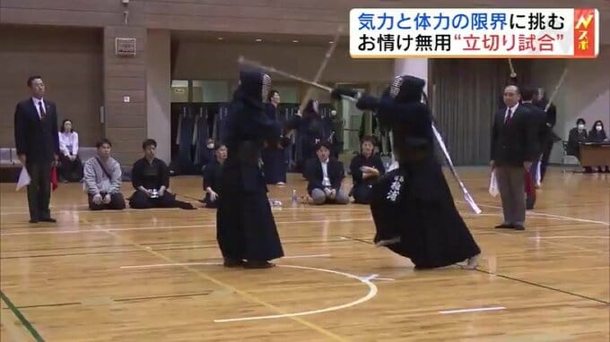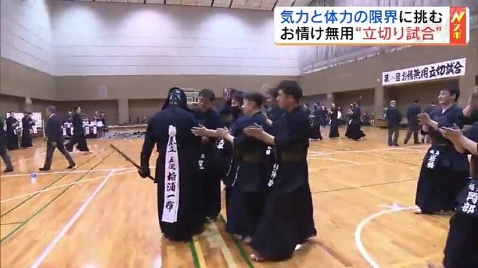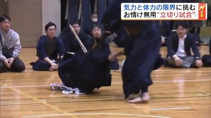 11日福島市で行われた剣道の立切り試合。「基立ち」と呼ばれる選手が、約2時間をかけて30人以上の挑戦者と立て続けに剣を交えます。「立切り」は幕末の剣術家・山岡鉄舟が編み出した剣道の鍛錬法とされています。