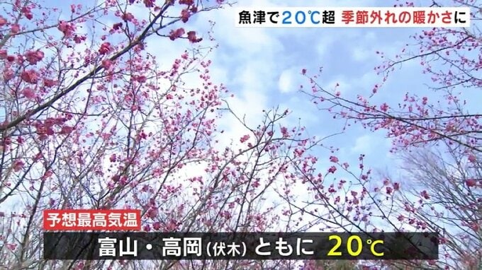 このあとも気温は上がり、予想最高気温は富山、高岡市の伏木ともに20℃です。