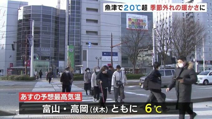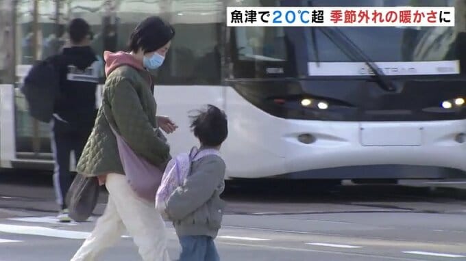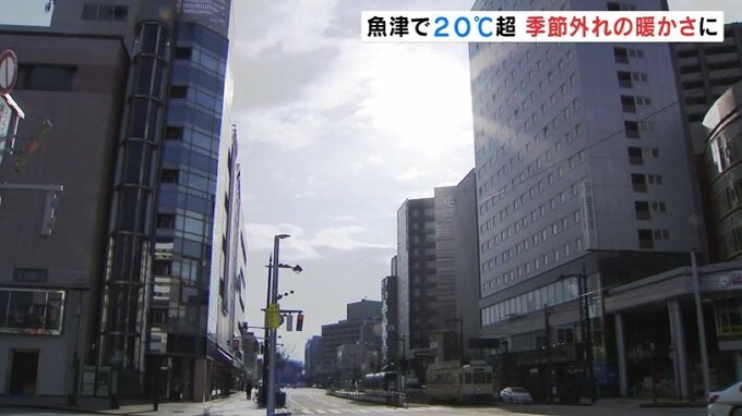 新潟地方気象台は15日、北陸地方で春一番が吹いたと発表しました。富山県内は朝から気温が上がり、午前11時までに魚津で20℃を超すなど、季節はずれの暖かさとなっています。