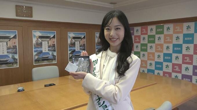 富山県高岡市出身でミス・インターナショナルジャパンの準ミス・インターナショナルに選ばれた高木咲依(26)さんが、15日、高岡市長を表敬訪問しました。