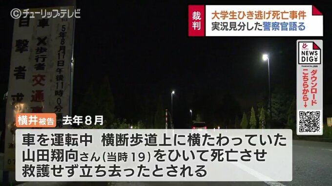 起訴状などによりますと、去年8月の夜、横井被告は富山市婦中町響の杜で車を運転中に、横断歩道上に横たわっていた山田翔向(やまだ・かなた)さん(当時19)をひいて死亡させ、救護せず立ち去ったとされています。