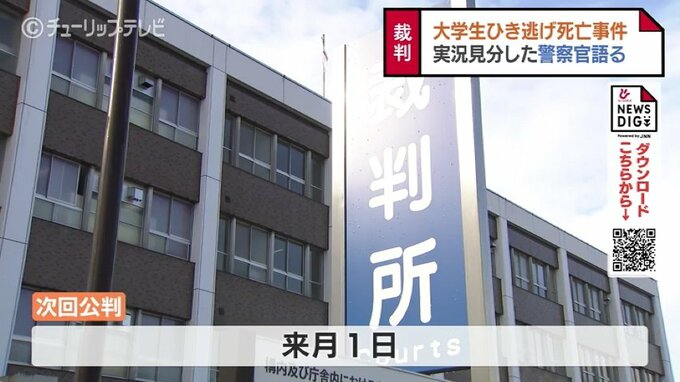 初公判で、横井被告は「人をひいたとは思わなかった」と起訴内容を一部否認していて、16日は事故の実況見分を担当した警察官の証人尋問がおこなわれました。