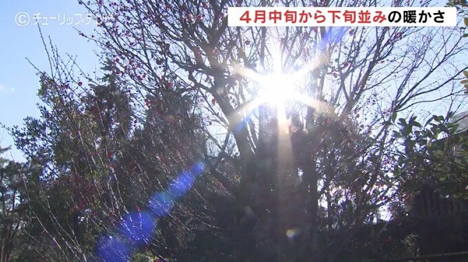そんな中、富山城址公園では、紅梅や早咲きのサクラなどピンクの花びらが青空に映えていました。暖かい日が続いたため、例年よりも1週間ほど早く開花したということです。