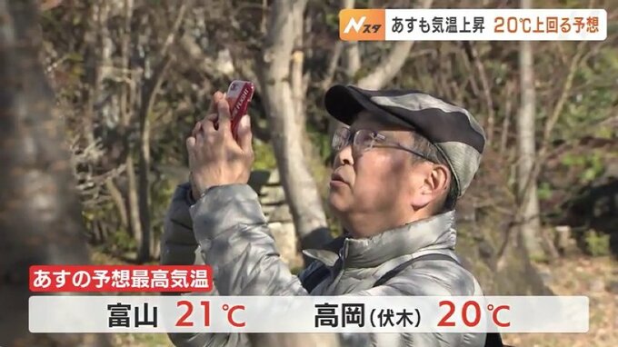 18日の県内は高気圧に覆われて、季節はずれの暖かさになりました。富山市八尾では20.6℃を記録し、2月の観測史上最高を更新。