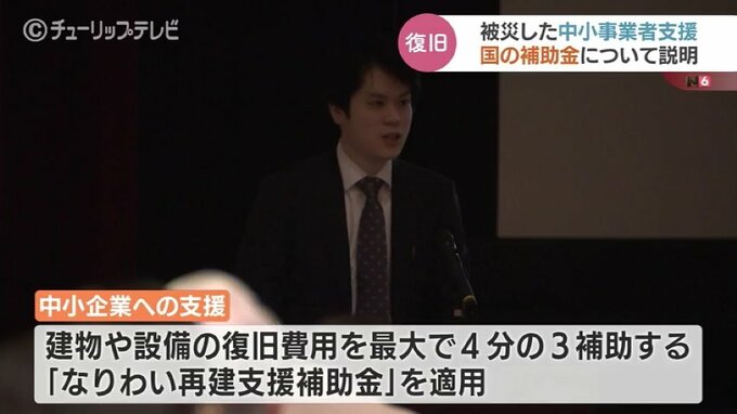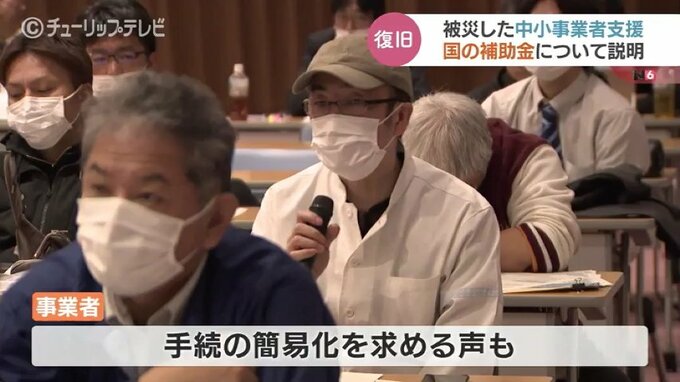 高岡市で開かれた説明会には、県内の中小企業などからおよそ130人が集まり、県や中小企業庁の担当者が被災した事業者に向け、復旧に関する補助金制度について説明しました。