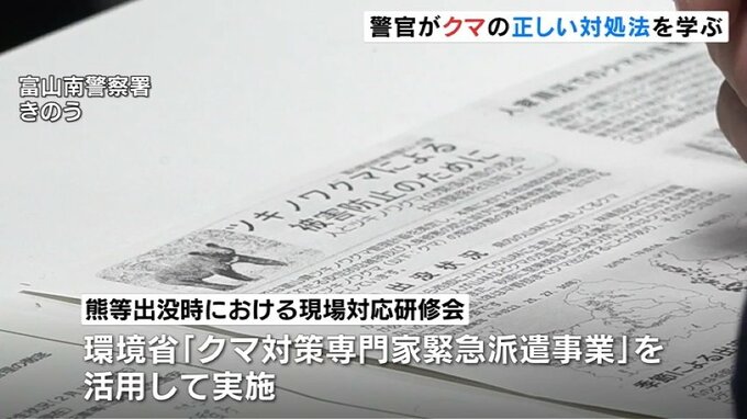 この研修は、去年11月から始まった環境省の「クマ対策専門家緊急派遣事業」を活用して行われたもので、富山南警察署の署員およそ100人が参加しました。