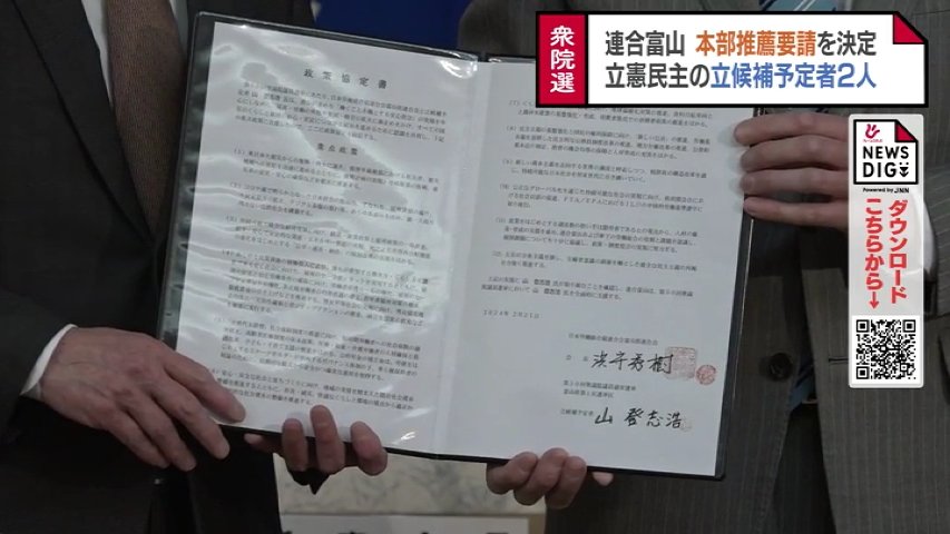 富山県内最大の労働団体・連合富山は次の衆議院選挙ですでに出馬を表明している立憲民主党の山登志浩氏と越川康晴氏について、21日付けで連合本部に推薦することを決め、政策協定を結びました。