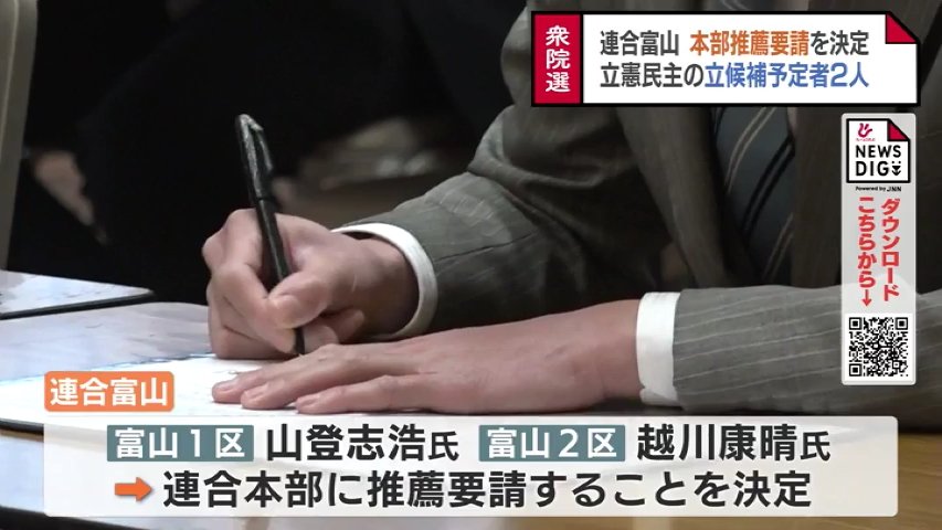 これは21日開かれた執行委員会で明らかになったもので、選挙区ごとにみると富山1区が山氏、富山2区は越川氏の推薦を要請します。