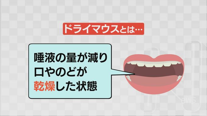 「乾燥するっていらっしゃった患者さんの中にはかなり唾液量が減っていて、指で触ってもくっついちゃうぐらいの全然潤いがない状態も。ここまでいくと本当のドライマウス」