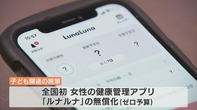重点を置いた子ども関連の施策では、出生率の向上に向けた新規事業として全国で初めて女性の健康管理アプリ「ルナルナ」を無料で使えるようにするほか第一子の保育料の半額と副食費の軽減事業などを盛り込みました。