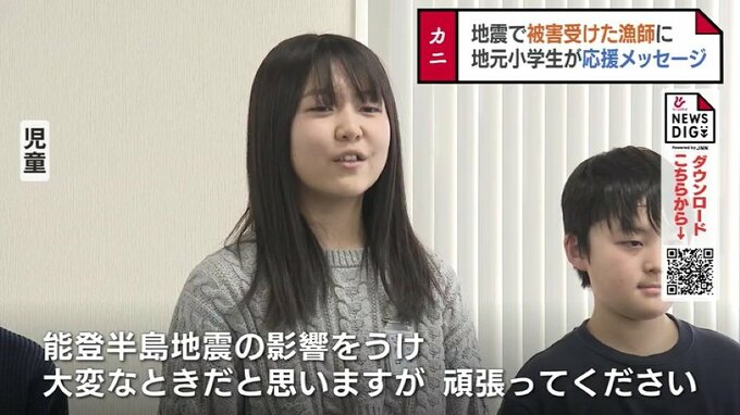 「学校でみんなとカニを食べてとても嬉しかったです。能登半島地震の影響をうけ大変な時だと思いますが頑張ってください」