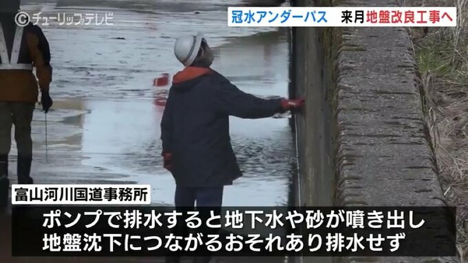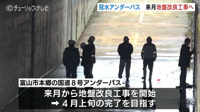 地震の影響で冠水していた富山市の国道8号のアンダーパスについて、3月から地盤改良工事がおこなわれることが分かりました。
